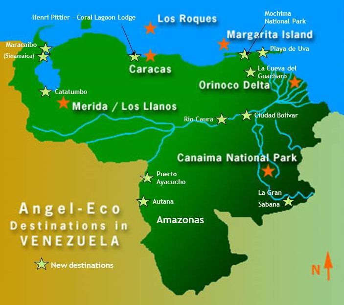 Please check out the map of Venezuela – this will give an orientation as to where Angel-Eco will partner Angel Conservation and operate their cultural tours.